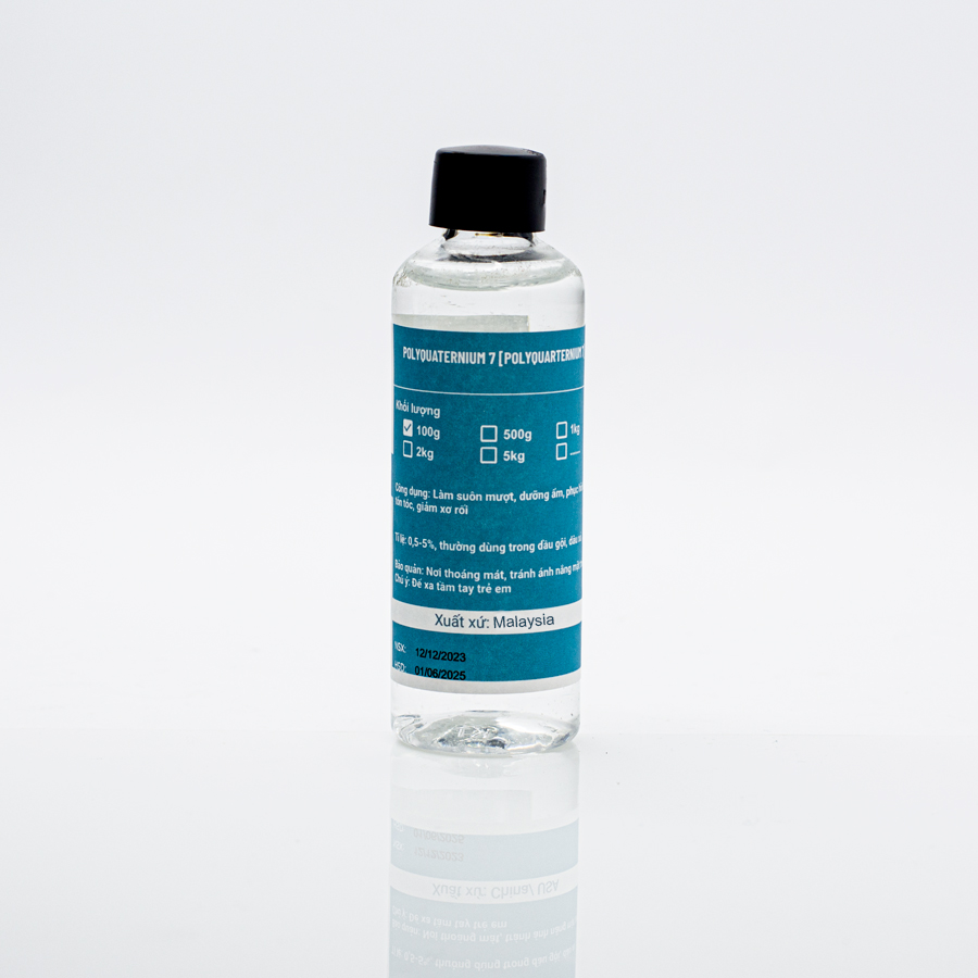 Polyquaternium-7 (INCI: Polyquaternium-7) is a water-soluble cationic polymer widely used in cosmetics, especially in hair care. It functions as a conditioning agent, helping with detangling, slip, and anti-static properties. It can also form a lightweight film on the hair, which contributes to manageability and shine.