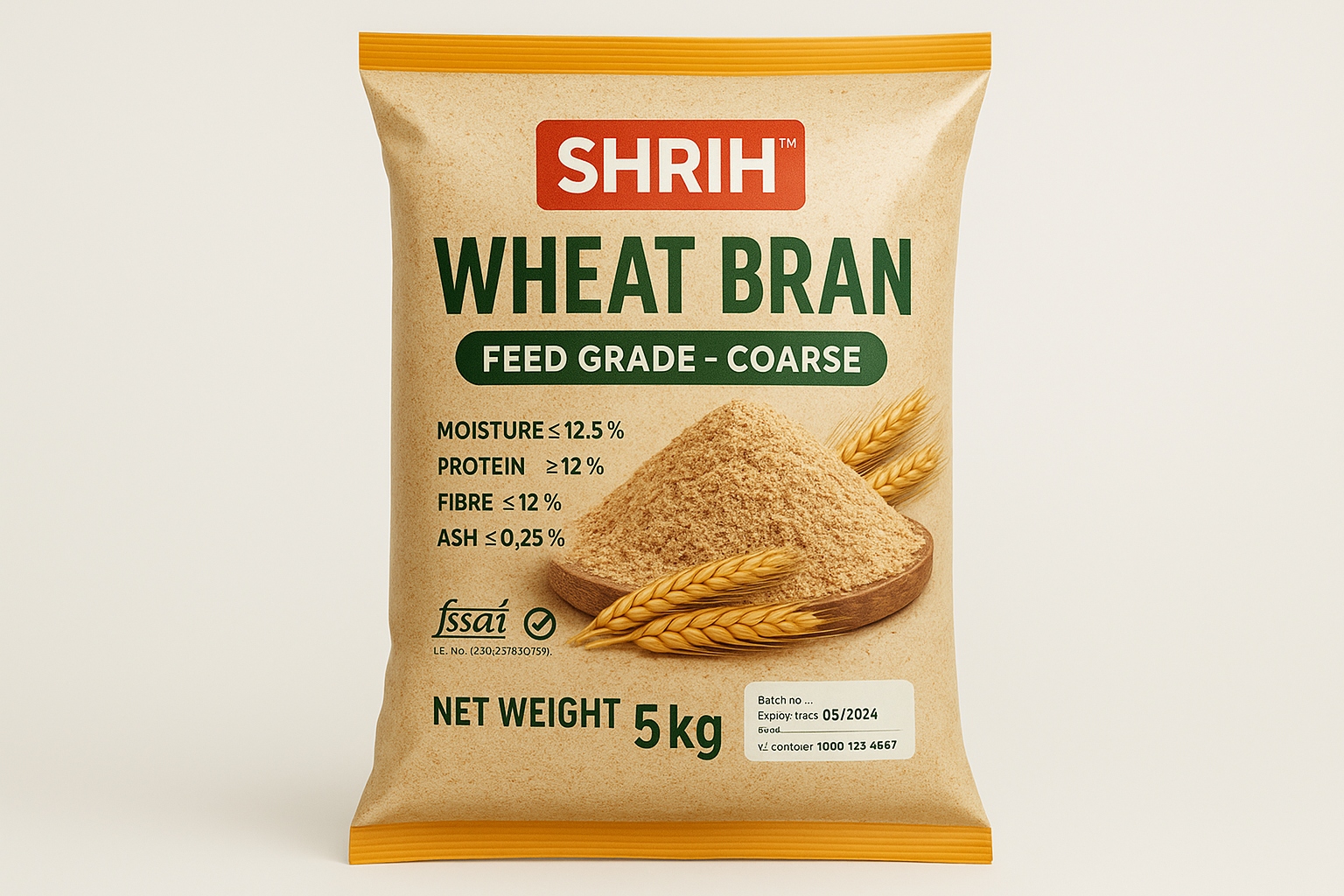 Purity grade: Feed Grade, >98% pure wheat bran (no hulls, no fines from other cereals)